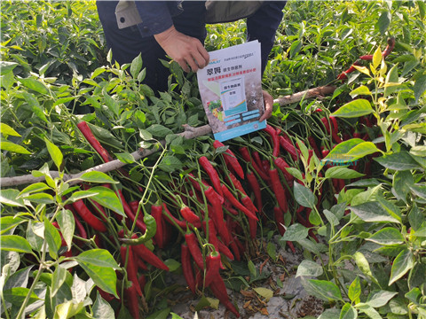 辣椒使用什么肥料好?到了辣椒后期,李大哥又把翠姆平衡、高鉀大量元素水溶肥都使用了,辣椒柯杈多,花多花實(shí),掛果量非常喜人,現(xiàn)在李大哥對(duì)拉姆拉翠姆水溶肥是非常認(rèn)可,也帶動(dòng)旁邊種植戶一起種植高品質(zhì)辣椒。