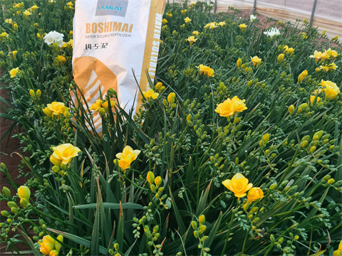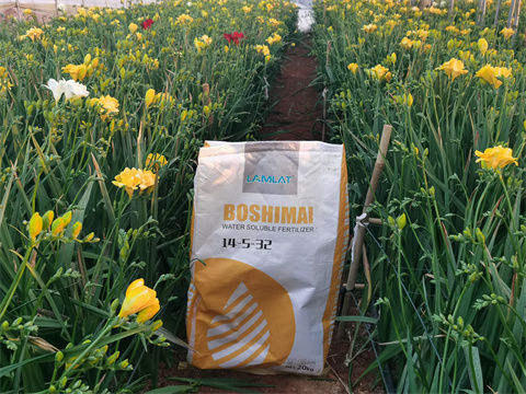 剛好此時期正是香雪蘭要開花的時候,王大哥便在開花前使用兩次拉姆拉伯示麥顆粒水溶肥,一段時間過去了,效果讓王大哥很是滿意,香雪蘭花苞大、多,開花率高,莖稈健壯。像之前偶爾會出現(xiàn)黃葉這種現(xiàn)象,在使用伯示麥顆粒水溶肥之后,幾乎沒有發(fā)生過,等花出售時,基本上都是一等花,效果非常棒。