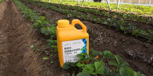 定植后緩苗期時用生根劑,因為根系是決定作物的生死存亡的根本,草莓屬于須根系,根系較短。緩苗后須根脆弱扎根淺,抗性低、容易發(fā)生死苗、弱苗。這時候用生根劑加菌肥,一是菌肥可以改良土壤,增加土壤通透性,讓新生毛細(xì)根可以有一個良好的土壤環(huán)境,有利于根系吸水吸肥,快速吸收營養(yǎng)便于作物生長。二是生根劑主要是促進(jìn)生根壯根、養(yǎng)根護(hù)根,前期保護(hù)根系快速生長從而讓根系強(qiáng)壯,增強(qiáng)作物對水分包括營養(yǎng)物質(zhì)的吸收。三是能夠擴(kuò)大肥譜讓之前施用的固定磷鉀肥重新分解再利用,降解土壤里的有害物質(zhì)和重金屬,提高作物的抗寒、抗旱、抗病能力,減少肥料的使用量,讓作物施用更少的肥得到更多的利益。