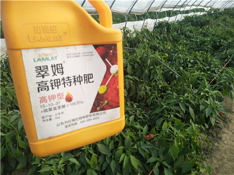 一般在移栽30-45天會出現(xiàn)第一茬辣椒花,但是這一茬花數(shù)量少,一棵一般只有一個,叫做門椒。假如追求提前上市,可以留住門椒。與此同時,在出現(xiàn)門椒花蕾的時候就應該注重磷肥的使用,推薦使用拉姆拉公司生產(chǎn)的磷肥,該磷肥全球首例大量元素一次性螯合成型不浪費,吸收利用率高。但是門椒的存在會影響辣椒的正常生殖生長與營養(yǎng)生長,因此如果追求的是產(chǎn)量,一般把門椒摘除。同時應注意磷肥的使用,促花促果,推薦與上述相同。在采收期,青椒應該注意控制鉀肥的使用,鉀肥過量攝入容易造成辣椒過早老化,甚至上色。使用拉姆拉平衡肥料,每畝地3-5公斤,可以有效促進辣椒果實的膨大,增產(chǎn)增收。相反,如果是紅辣椒,在果實達到成果1/2長度的時候應該磷鉀同補,在使用拉姆拉公司生產(chǎn)的磷鉀肥的同時,可以葉面噴施該公司的葉面肥與磷酸二氫鉀1000倍液??纱龠M紅辣椒上色,不用使用乙烯利等上色劑。采收后期如果辣椒行情較好,拉姆拉菌肥與根碧多每畝3-5公斤,可以延緩辣椒衰老,延長采收期。