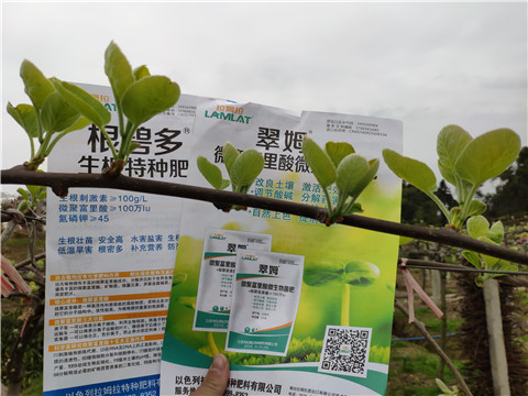 ? ? ? 拉姆拉使用方案:全年使用三次翠姆根碧多5kg+翠姆微生物菌劑5kg/畝。獼猴桃的三次花芽分化是3月,6月,9月份。3月份使用拉姆拉套餐肥,萌芽整齊,預(yù)防早期落葉,黃化等問題。六月份是獼猴桃的第二次花芽分化高峰期,同時這階段溫度是高溫天氣,高溫天氣會抑制根系生長,使用拉姆拉套餐肥打破高溫引起的根系生長障礙,讓獼猴桃第二次花芽分化正常進行。采收完果子之后,由于獼猴桃樹體消耗比較多,樹體會弱,如果不好好養(yǎng)樹,明年花芽分化不好。這次使用拉姆拉套餐肥快速恢復(fù)獼猴桃樹勢,讓獼猴桃順利越冬。針對獼猴桃的管理,大家要細心,發(fā)現(xiàn)問題及時解決,獼猴桃的管理需要一定的技術(shù)。