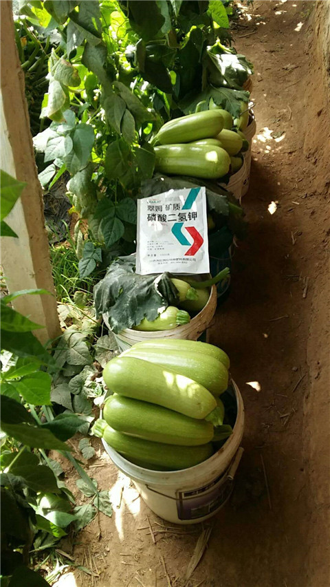 ? ? ? 例如以色列拉姆拉對于磷酸二氫鉀的使用研究較為深入,其翠姆礦質(zhì)磷酸二氫鉀與殺菌劑的復(fù)配比較好,而且起到更多增效的效果。翠姆礦質(zhì)磷酸二氫鉀與殺菌劑氟硅唑的復(fù)配,不僅起到殺菌,補(bǔ)充磷鉀營養(yǎng),還有控旺的效果,通過大量實(shí)驗反饋,西葫蘆上色難上色慢的問題,這個配比方案就能很好的解決,可以做到3~4天讓西葫蘆的瓜色由發(fā)白到轉(zhuǎn)綠。