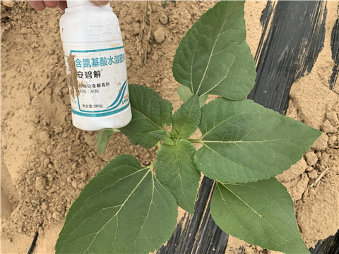 內(nèi)蒙古赤峰市敖漢旗劉哥種植葵花3畝,因?yàn)槁愤吘G化除草使用除草劑,剛好當(dāng)天刮的有風(fēng),造成除草劑漂移,葵花一半都不同程度的出現(xiàn)了藥害。針對(duì)這種情況劉哥使用安碧解并復(fù)配1瓶翠姆葉面肥進(jìn)行噴施一遍。過(guò)了4天后,葉片完全恢復(fù)并快速又發(fā)出了新葉,劉哥表示非常滿(mǎn)意。